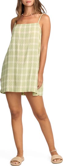 Covered in yarn-dyed checks, this breezy cotton-blend dress is cut in a roomy shift silhouette and anchored by slinky adjustable straps.