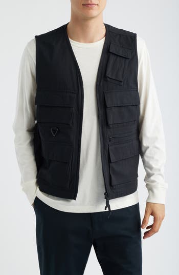Built for camp-ready performance, this utilitarian vest features rugged herringbone canvas construction with ample flap pockets, a two-way zip front and D-ring for securing tools and outdoor essentials.