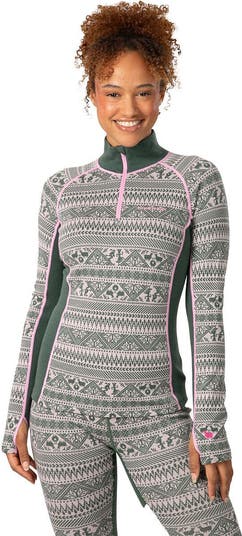 Equal parts function and flair, the Tale 1/2-Zip Top blends natural Merino performance with timeless Nordic design for a layer we love to wear on and off the mountain. Whether were heading out for a powder day or coffee in town, its cozy feel and stylish jacquard knit make it a versatile winter staple. Crafted from 100% Merino wool, the Tale regulates temperature, resists odor, and wicks moisture to keep us comfortable through long, active days. Smart design details like a front zip for ventilation, soft chin guard, and contrast color blocking deliver on performance and personality alike.