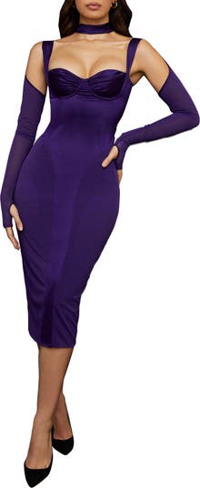 This body-con satin dress features a contouring corset and powermesh lining for a figure-flattering silhouette that is still comfortable to move in.