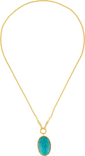 - 22Kt Gold plated brass - Turquoise - Size : Pendant 1.8" Chain 24.4"