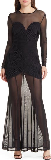 Talitha Smocked Mesh Long Sleeve Gown
