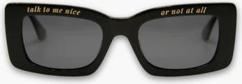 Our Talk To Me Nice square sunglasses in black blend timeless design with a playful edge. Handcrafted from eco-friendly bio acetate and fitted with polarized lenses for glare-free clarity, they’re designed for comfort and confidence in any setting. The outside of the frame reads “Talk to me nice or not at all,” a subtle reminder of self-worth that makes them an unforgettable gift or personal keepsake. Complete with 100% UVA/UVB protection.