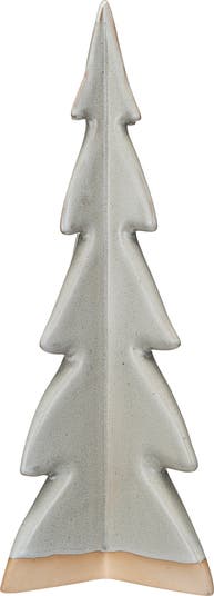 This decorative stoneware tree with reactive glaze is a beautiful and convenient way to decorate for the holidays. It features a decorative stoneware tree with a grey color and a reactive glaze that creates a unique pattern on each piece, making it a one-of-a-kind item. The tree has a smooth and glossy texture that is pleasant to touch and look at. The tree is ideal for displaying on a table, shelf, or mantel, where it can add a touch of sophistication and charm to any space. The tree is made of stoneware that is sturdy, durable, and easy to clean, making it a great choice for holiday decoration. It measures 4.75 inches in length, 5 inches in width, and 14.25 inches in height, making it a subtle and attractive centerpiece. Elevate the holiday decor with this eye-catching Christmas tree, adding both style and a touch of whimsy.