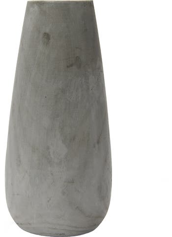- A graceful and elegant vase that features a grey wash finish and a tall and slender shape