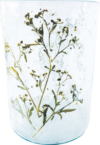 Tall Reclaimed Glass Votive Holder with Natural Botanicals, Clear