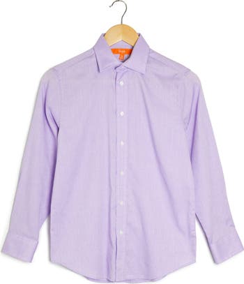 This lavender dress shirt features subtle microdots and impeccable tailoring in a lightweight cotton blend.