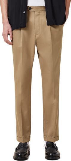 A blend of cotton and wool brings lightweight warmth to sharply pleated pants complete with cleanly cuffed hems.