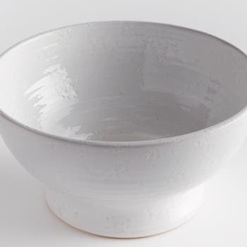Subtle throw lines and natural textures from the firing process give this terracotta bowl a vintage look. Finished in a warm white glaze, it is beautiful displayed as is, or add a few natural orbs for added texture and color.