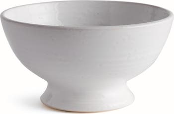 Subtle throw lines and natural textures from the firing process give this terracotta bowl a vintage look. Finished in a warm white glaze, it is beautiful displayed as is, or add a few natural orbs for added texture and color.