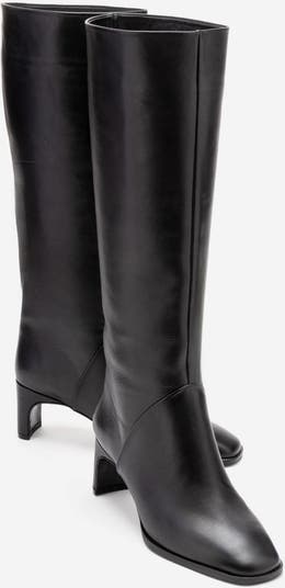 A sleek knee-high boot that fuses minimalist design with polished leather craftsmanship