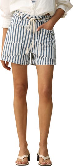 Blue-toned stripes sweeten the look of these lightweight denim shorts fixed with an adjustable rope-drawstring waist.