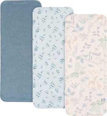 Keep everyday moments elegant and clean with this premium 3-pack of burp cloths. Designed to blend comfort and style, each cloth is crafted from soft cotton and backed with plush fleece, offering a thick, 2-ply feel that delivers a cushioned, absorbent feel. The soft blue tones and nature-inspired leaf and floral patterns add a touch of sophistication, making these burp cloths as beautiful as they are practical. Perfect for protecting your outfit during feedings or cleaning up gentle spills, this set combines luxury and everyday ease in one everyday essential.