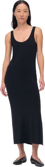 Our slim fit U-neck tank dress, cut on the bias with side seam slit and flattering, asymmetric seam detail. In an organic cotton and Tencel™ blend. The 100% organic cotton we chose for this shirt ensures maximum strength and softness. The lyocell fiber comes from an FSC Certified supplier focused on reducing and recovering their use of water, chemicals, and energy within the wood pulp and fiber production processes. The addition of a small amount of elastane helps to improve strength and performance, helping to extend the garment's lifetime.