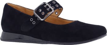 Gleaming grommets and an oversized buckle bring bold hardware edge to a suede mary jane designed with arch-supporting memory foam cushioning.