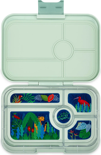 - Leakproof design: Molded silicone-lined lid seals each compartment to prevent leaks and keep food fresh—ideal for dips, yogurt, and more. Spacious & versatile: Features 5 compartments with a total volume of 4.2 cups—perfect for packing a variety of foods for preteens, teens, and adults. Easy to clean: Removable tray is dishwasher safe (top rack only); hand washing the outer shell is recommended to preserve the silicone seal. Safe & durable: Made from BPA-free, food-safe ABS, Tritan, and silicone—built to last through daily use at school, work, or on the go. Dimensions: Measures 9.5" x 6.9" x 1.8"—compact enough to fit in most lunch bags, yet roomy enough for a satisfying, well-balanced meal.