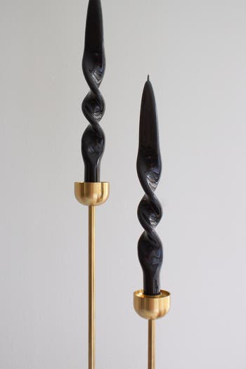 high-gloss taper candles that are nothing but chic. style them sky high on minimalist candle sticks or grab your heirloom / vintage ones and adorn your holiday table. quite the accent for all forms of decor (boho, vintage, retro, minimalist, etc.) finished by hand from an italian family that has been making candles since the 1800s