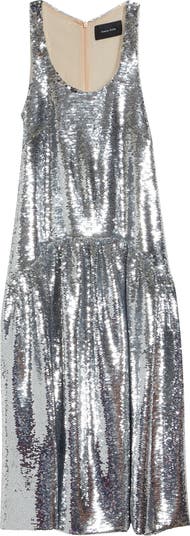 Inspired by girlhood in bloom, Rocha transforms your childhood-favorite party dress into a glamorous statement for grown-up soirées. Gleaming silver sequins shimmer across the surface of this runway-showcased dress that flows into a voluminous drop-waist skirt, its soft gathers blossoming like unfurling flower petals.