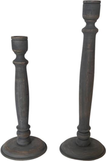 Enhance your home decor with our set of 2 handcrafted taper candleholders, beautifully made from dark grey mango wood in India.