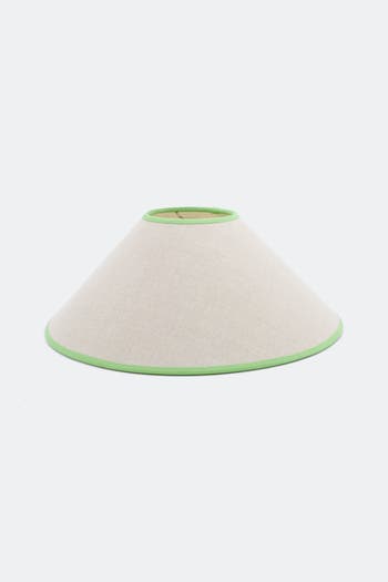 A minimalist and natural conical shade with a lovely spring green accent border. Our lampshades are handcrafted in our own workshop using premium brass-plated steel and feature a spider fitting compatible with US-style lamps—we hope they light up your life.