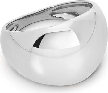 A handcrafted, softly sculpted ring shines in recycled sterling silver to make a striking statement.