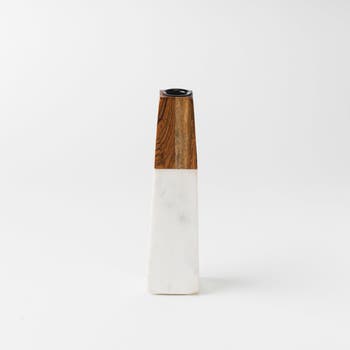 A study in shape and contrast, this candleholder pairs cool white marble with warm acacia wood in a beautifully tapered silhouette. Its clean geometry and organic textures come together to create a piece that feels modern, artful, and effortlessly refined. Perfect as a single statement or styled in pairs for a sculptural, gallery-like look
