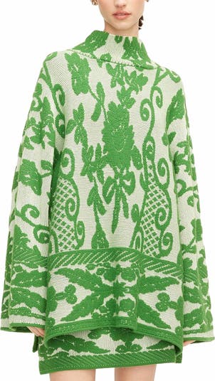 Opulent vintage textiles are reimagined as an oversized turtleneck, cut with wide sleeves and a tunic length. Model is 5'10" and wearing a size 2/small Viscose, nylon, extrafine merino wool Dry clean only