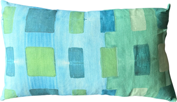 Painted in a mix of blue and green, this pattern is a beautiful as a pillow. Perfect for a living or bedroom. 12x20 inches 100% European linen Designed in NYC, Made in Portugal Hidden zipper enclosure Feather/Down Insert included Removable cover, machine wash cold, line dry or dry clean