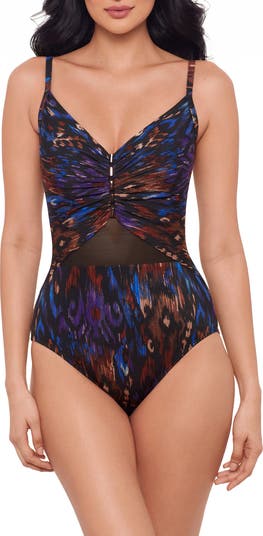 Summon confidence as you lounge poolside in this beautiful one-piece swimsuit cut from signature Miratex® fabric for added support. It has a hidden underwire built in and a breezy mesh inset.