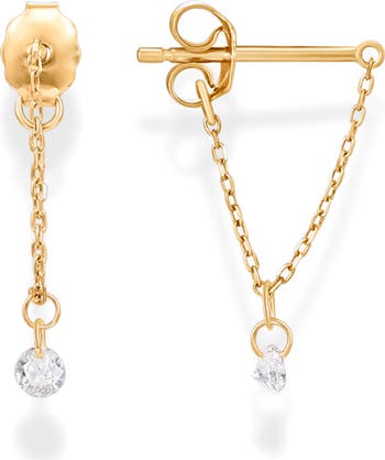 Looped and suspended chains put an edgy spin on these statement-making studs tipped with glimmering pear-cut cubic zirconia.