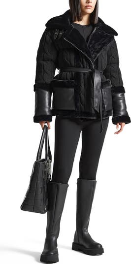 Combining classic biker styling with refined knit craftsmanship, this jacket offers a modern take on an iconic silhouette. Crafted from high-quality knit fabric, it delivers both comfort and durability while maintaining a structured shape. The belted waist detail defines the form with a subtle edge, complemented by a classic lapel collar that adds timeless sophistication. Finished with a soft knit texture for an elevated feel, this piece is a versatile staple for effortless, contemporary dressing.