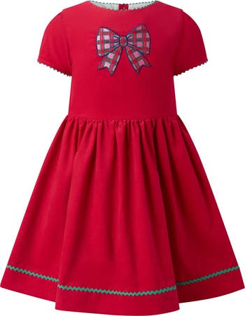 New! Introducing our Tartan Bow Embroidered Dress, the perfect outfit for your little one this season! This adorable red dress features a cute bow embroidery design at the chest, along with playful ricrac ribbon trims in contrasting green tone. With short puff sleeves, a gathered skirt, and a fully lined design, this dress is not only stylish but also comfortable. Perfect choice for special occasions.