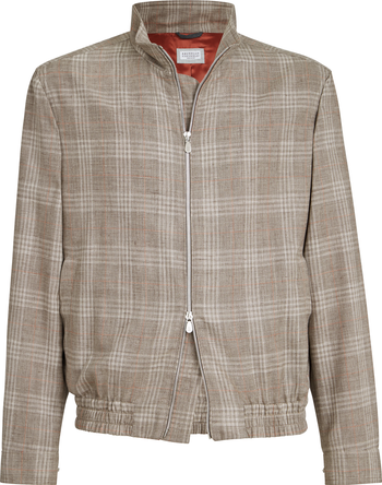 The lightweight wool, silk and linen fabric is crafted to create the classic tartan pattern in the season’s colors. The material combines the natural properties of different yarns, resulting in a crisp, glossy fabric with a compact texture enriched by a characteristic slubbed appearance that creates irregular color effects. The cupro lining provides added comfort.