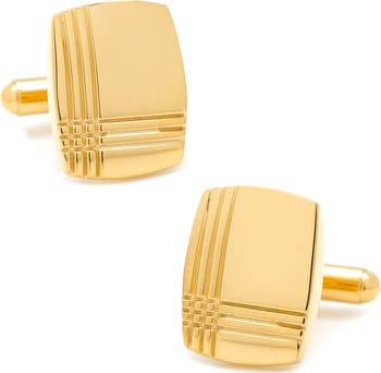 Coordinate your plaid accents with modern flair when you add these shiny rectangular cuff links with tartan-inspired engraved lines.