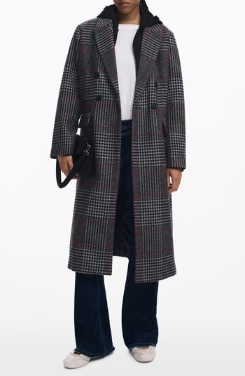 Covered in tartan plaid and warmed by a generous dose of wool, this double-breasted overcoat also comes with a removable hoodie inset for a cool, layered look that takes no effort at all.
