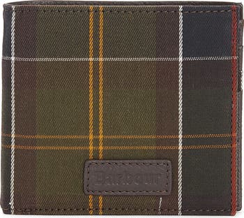 A signature logo patch stands out against the iconic plad exterior of a slim bifold wallet featuring ample slots and RFID shielding to protect your personal info.