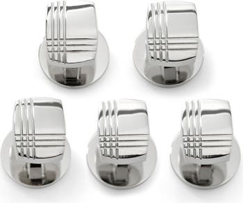 Polished sterling silver studs are engraved with an elegant tartan design in this timeless set that'll perfect your formal looks.