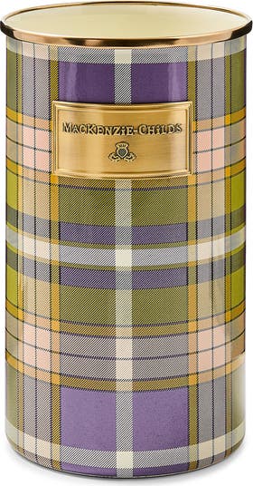 Store your utensils with ease in this extratall tartan holder made with hand-decorated tartan transfers and bronzed metal trim.