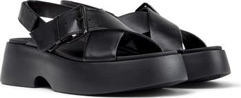 An anatomic footbed and an extralightweight sole ensure flexibility and comfort in a bold platform sandal topped with adjustable leather cross straps.