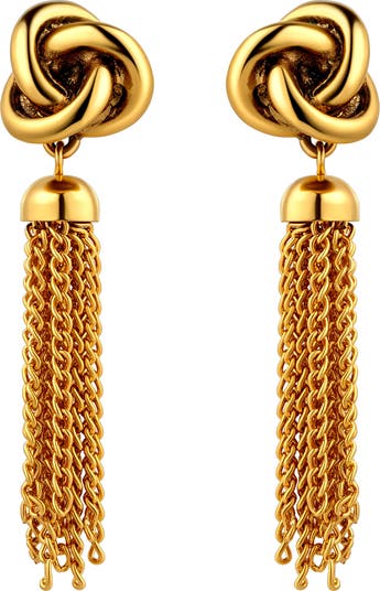 Hand-carved by New York artisans, elegantly knotted endcaps and strands of dangling chains catch the light in radiant 14-karat gold plate on these drop earrings that deliver a captivating mix of texture, movement and shine.