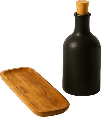 The Stoneware Olive Oil Bottle X Olive Wood Bread bundle makes a perfect gift for cooking enthusiasts. The bundle includes a stoneware olive oil bottle and an authentic olive wood slicing board, creating the perfect combination for any kitchen. Enjoy an unbeatable combination of style and function. Dimensions: The Olive Oil Bottle • Diameter: 3.2inches (8cm) • Height: 7.9inches (20cm) • Capacity: 21oz (60cl) • Weight: 1.1lbs (0.5kg) The Olive Wood Board • Length: 15inches (38cm) • Width: 4inches (10cm) • Height: 1inch (2cm) • Weight: 1.3lbs (0.6kg).
