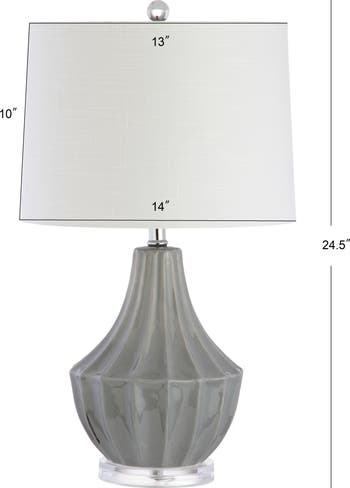 Create an inviting and stylish entertaining space with this fun ceramic gourd table lamp. A combination of a quirky pear shape and classic Roman fluting make it the perfect accent for a variety of decor styles. Topped with a drum lampshade and crystal finial to complete the look, the style extends all the way to the plug with a silk-wrapped cord.