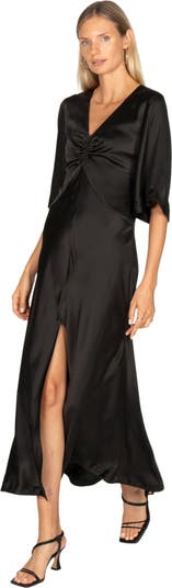 Secret Mission’s Tatianna Dress is crafted from 100% sand-washed silk, bias-cut to offer a soft matte finish with a fluid, body-skimming drape. Designed with a flattering V-neckline, front ruching detail, and flutter sleeves, it creates an elegant silhouette that flows effortlessly. Finished with a front slit for ease and allure, this wardrobe staple captures timeless sophistication with a modern touch.