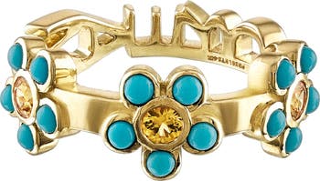 This playful and modern ring is detailed with turquoise and spells out 'dream' along the band.