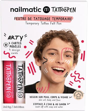 Discover our creative Tattoopen and make-up sets for children, featuring themed kits like ‘Paris’ (yellow & blue), ‘New York’ (green & pink), ‘You’re the Artist’ (red, yellow & orange with a 24-page activity book), and the adorable ‘Rabbit’ and ‘Cat’ sets by Ami Imaginaire—each including temporary felt pens and reusable stencils for endless artistic fun!