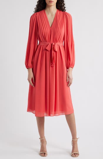 Tatum Pleated Tie Waist Long Sleeve Dress