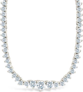 Graduated round-cut bright-white cubic zirconia lend elegant shimmer and shine to a tennis necklace secured by a slide closure to perfectly adjust the length with ease.