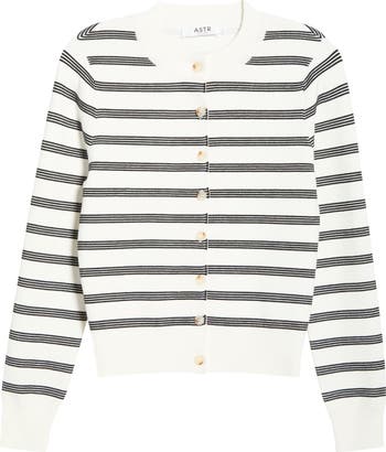 Classic stripes bring timeless appeal to this crewneck cardigan styled with a button-front closure. Ribbed trims refine the look, while the relaxed silhouette makes it easy to layer through transitional weather.
