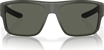 Polarized lenses help reduce glare especially on water or outdoors in these rectangular sunglasses built for durability with oversized temples and vented, adjustable nose pads.