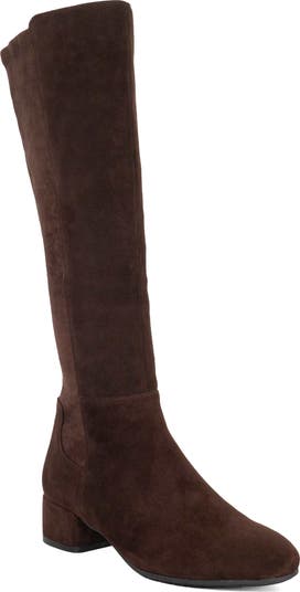 Smooth suede composition adds everyday sophistication to a knee-high boot set on a just-right block heel.